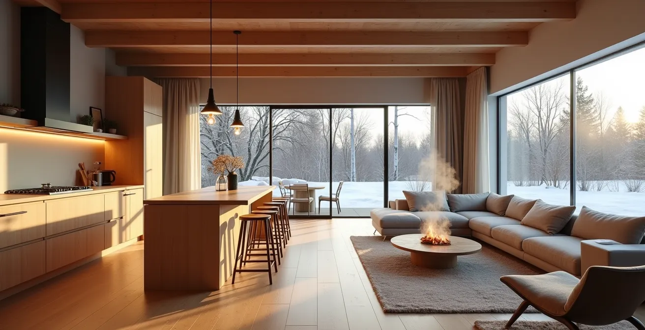 Ces approches échouent car elles traitent les symptômes et non la cause. Mais si le véritable enjeu n’était pas la puissance de votre appareil de chauffage, mais plutôt un déséquilibre dans ce que l’on peut appeler l’écosystème de confort de votre maison ? Une aire ouverte n’est pas une simple pièce, mais un système dynamique où le chauffage, la ventilation, l’humidité et l’acoustique interagissent constamment. Une hotte de cuisine trop puissante peut littéralement aspirer l’air chaud de votre salon, tandis qu’un choix de mobilier inadapté peut créer des îlots de froid inconfortables.