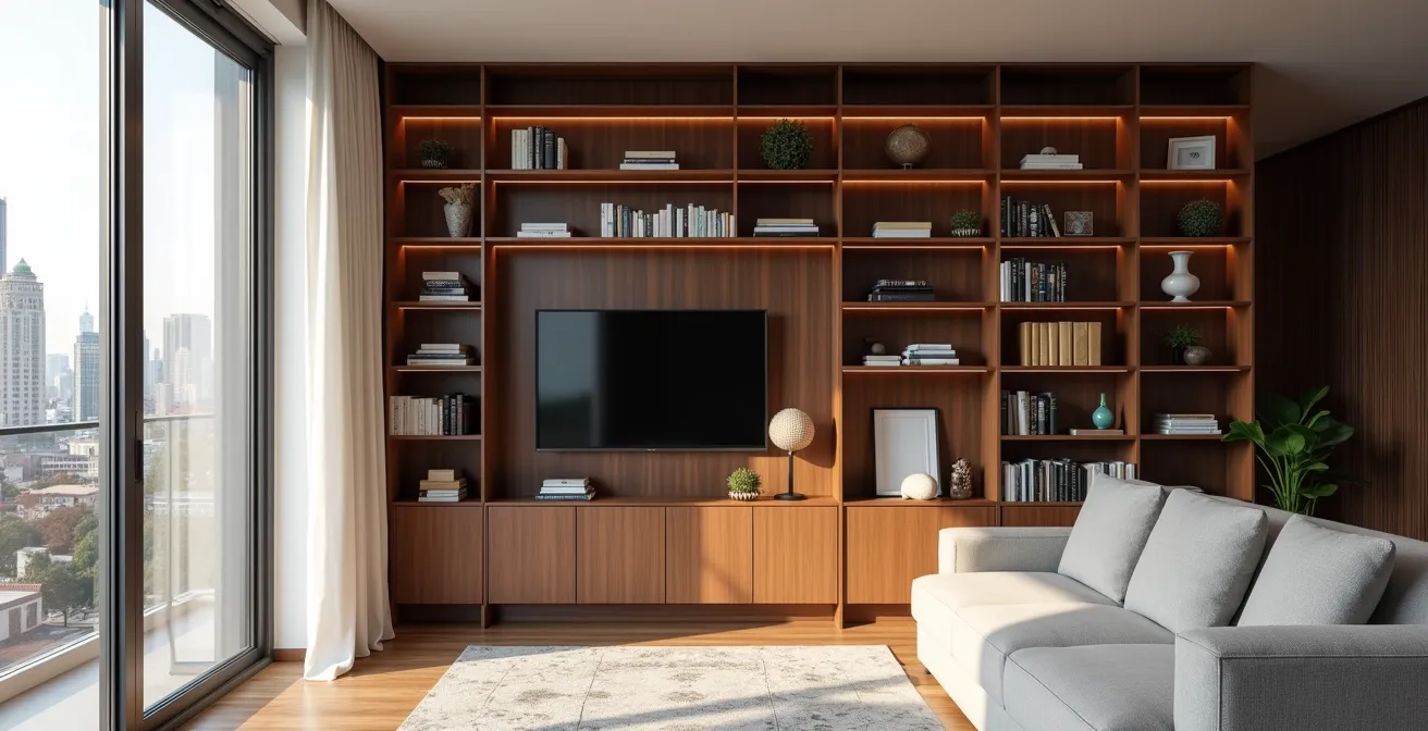 La valeur d’un meuble sur mesure ne réside pas seulement dans sa façade, mais surtout dans son intelligence intérieure. Gagner 30% de stockage n’est pas une promesse en l’air, c’est le résultat d’une ingénierie de l’espace réfléchie. Pour un acheteur potentiel, ouvrir une armoire et y découvrir un espace parfaitement organisé est un argument de vente puissant. Cela démontre une optimisation maximale de chaque centimètre carré, un luxe dans les condos modernes.