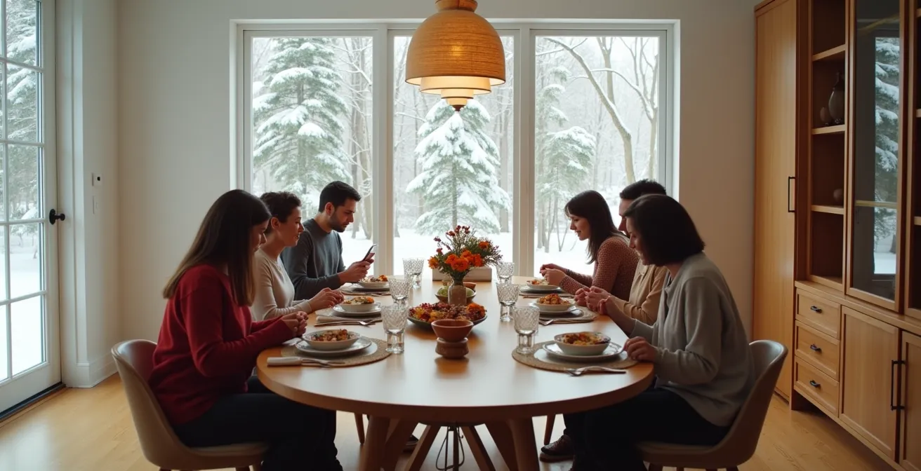 Lorsque le thermomètre plonge bien en dessous de zéro, notre réflexe est de monter le chauffage. Pourtant, une chaleur ambiante élevée n’est pas toujours synonyme de confort et peut même être asséchante. La clé d’un intérieur véritablement chaleureux en hiver réside dans une stratégie de chaleur localisée, concentrée autour des zones de vie comme la table à manger. Il s’agit de créer des cocons de bien-être plutôt que de chauffer des volumes vides.