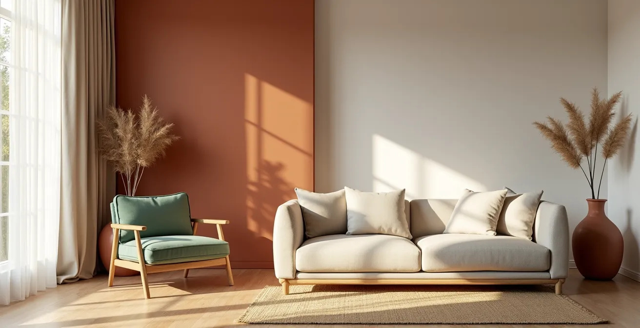 Le choix d’une palette en terracotta, sauge ou gréige va bien au-delà d’une simple décision esthétique. C’est un acte de sculpture lumineuse. La véritable maîtrise ne réside pas dans la couleur elle-même, mais dans la compréhension intime de son interaction avec la lumière si particulière du Canada — souvent froide, basse en hiver, et radicalement différente d’une pièce à l’autre. C’est comprendre pourquoi un blanc pur peut rendre une pièce encore plus triste en janvier, ou comment un terracotta bien placé peut réchauffer l’espace sans l’assombrir.